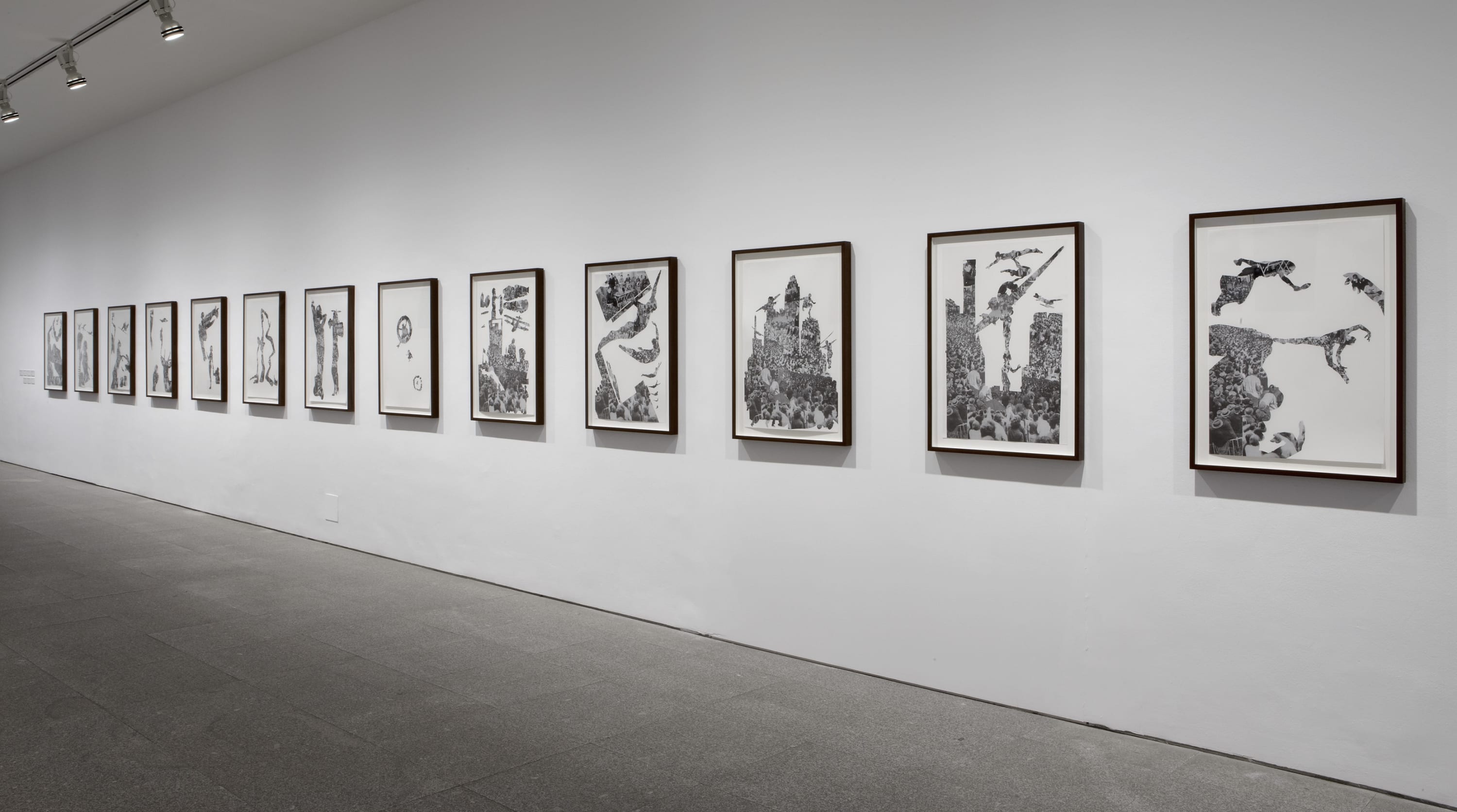 The series Figures and Prefigurations (Divers) and The Staff that Matters, reproduce photomontages of artists who, coming from different ideological contexts, will reach similar formal resolutions. The series share a common template as padding for figures. This cutout template is in turn a montage of fragments of photographs that show concentrations of people, taken from a position elevated, the classic representation of the collective subject and one of the motifs of another interwar genre, the political poster. The photomontage technique allows the artist to explore the relationship of tension between background and figure, between form and content and between aesthetics and ideology.