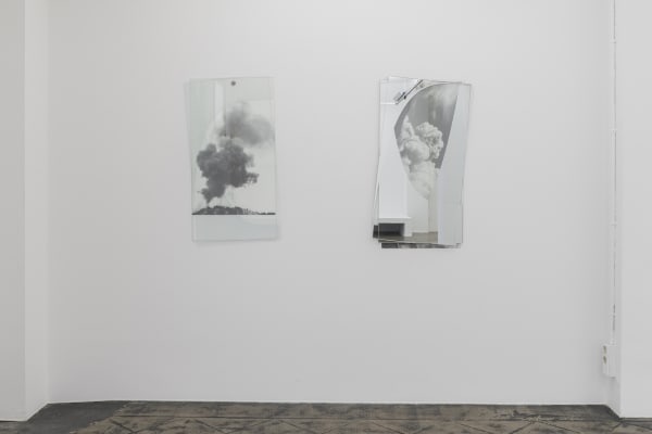 Overlays are the basis for the sculptures in the Diagramas de dispersión (scatterplot) series. In these, highly enlarged and printed cutouts of various images (crowds, clouds of smoke ...) are combined with glass and mirrors on top of each other, so that the subject of each composition becomes difficult to visualize. Not only due to the assembly of the layers but also, even more, due to the interference of what is reflected on the specular areas in them. For the title, Mendizabal has referred to terms or tools used in mathematics. In the same way that it is usually interpreted in these statistical graphs, in Mendizabal's sculptures, it is also the mixture of simple relationships between variables that becomes visually evident as overlapping patterns.