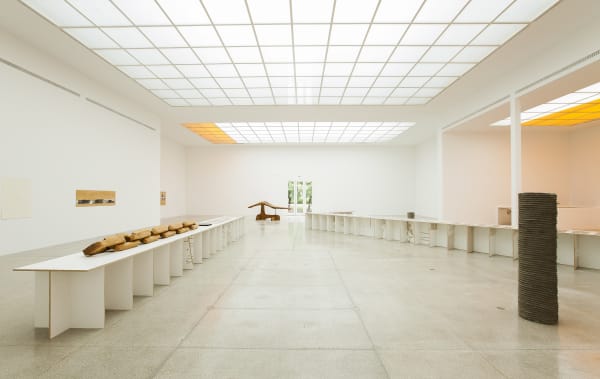 The "Limbo" pieces consist of a development to the work that he participated with in the 2014 Bienal de São Paulo. Titled Agoramaquia (el caso exacto de la estatua), the previous work comprised five large pieces in iron and rubber that reported directly to a lost work of also Basque sculptor Jorge Oteiza (1908-2003). In a speculative approximation to the work of Oteiza, Mendizabal’s pieces were perforated planes, as if trespassed by cylinders. Playing with the simulation of an interior space and with the full-empty binomial, these pieces not only consolidated the notion of sculpture as a process of spatial disoccupation – basic concept of Oteiza, exemplarily accomplished here – but also signaled the paradoxes by which all the works of his countryman were organized: the impulse to create by way of subtraction, the desire to affirm by way of negation and, ultimately, the mission to make city by way of sculpting. The works "Limbo" maintain the previous formal approach, but invert their scale and adapt their materiality. Ductile, translucent and much more modest in size, they are instances, states of a transformation that signals a double and paradoxical movement: the gradual revelation of the sculptural structure and its slow, but progressive, disappearance.